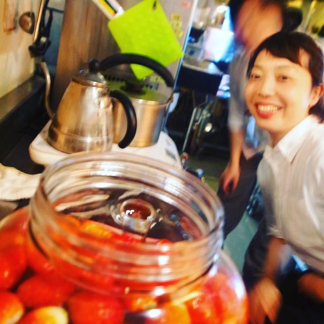…って保存瓶にぬまっちが漬けてくれてるのを撮ってたら、すかさず入ろうとするとトミーちゃんと店長ミヤザキ(笑)(お)