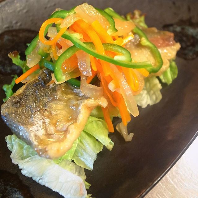 さてと金曜日〜っ!と、えぇ、連日小出しでご紹介は「アジの南蛮漬」!いや、今週もお疲れ様でした!と疲れた身体に酢がイイネ!まずはさっぱり前菜にどうぞ!(お)