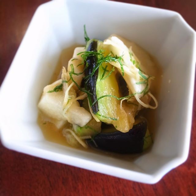 食べとかなきゃソンソン!水茄子の季節ですね。見ると買いたくなっちゃう季節もののお野菜。水茄子はみずみずしくて、暑くなってくるこの時期に食べると、清々しい気分になれます。シャキッと歯ごたえも気持ちいい長芋、青じその香りと生姜の辛味も爽やかに効かせた新メニュー「水茄子と長芋のわさびあえ」、小さなメニューなのでお一人様でも安心!ぜひお試しください。(麻)