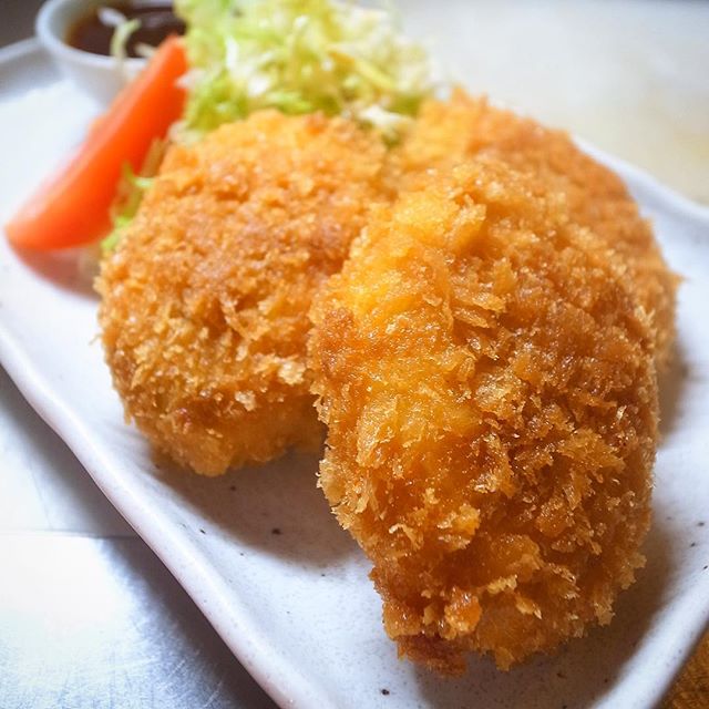 さてと夏空に恵まれた金曜日!今週もお疲れ様です!とやっぱり今夜はコロッケにひえひえ生ビール!からりと揚げたては空豆の入ったポテトコロッケ!ソースをだぼだぼかけてたべたいっ!(笑)(お)