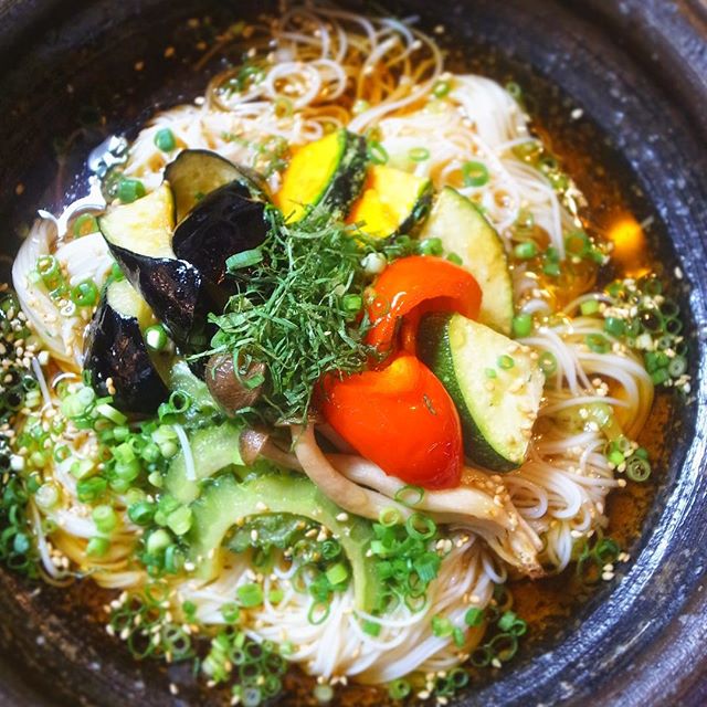 七夕には素麺を食べる!という風習に習って、今週はリトスタそうめんナイト開催中です。旬の野菜を揚げて素麺の上にのっけて、朝とったお出汁で作っためんつゆをぶっかけていただきます…揚げ野菜のっけそうめん! ちゃんととっただしで作るめんつゆは、すっきりとした旨味があります。ゴマと小ねぎと大葉の香りが爽やかに食欲をそそる、夏バテ知らずの一品です。元気のない人にこそ食べていただきたい!(麻)