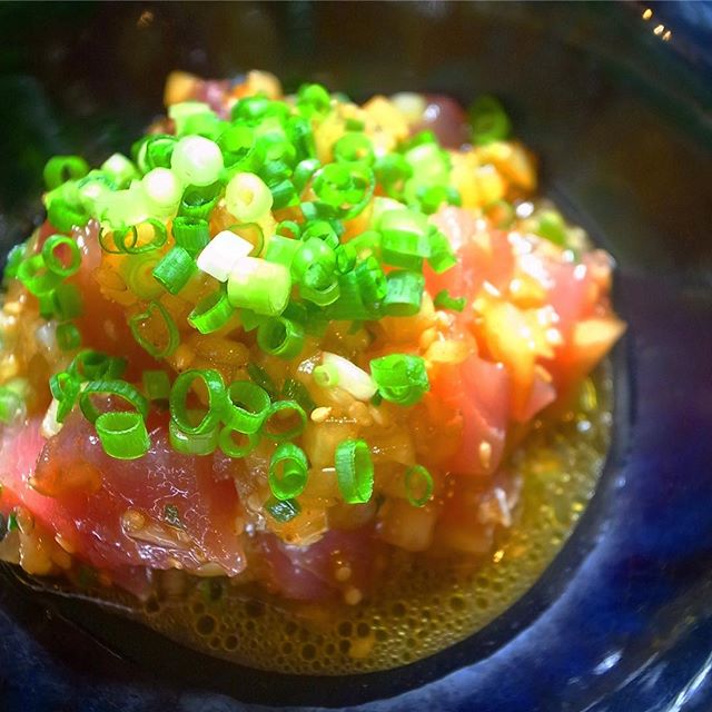 さらに今週のまぐろは「まぐろのポキ風マリネ」!ざっくり角切りにしたまぐろにたまねぎ細ねぎ合わせたら、醤油にごま油チリペッパー…こっくりハワイアンなポキ風マリネ!(お)