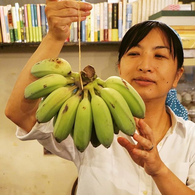店長ミヤザキが一番好きな果物、それはバナナ! 同じバナナ大好き友人バナナ部のチカコさんから、沖縄直送島バナナをおすそ分けいただき、店長ミヤザキウットリしております。追熟してから食べるので、当分はオアズケ。でもこうしてぶら下がってるだけでかわいい〜!(麻)