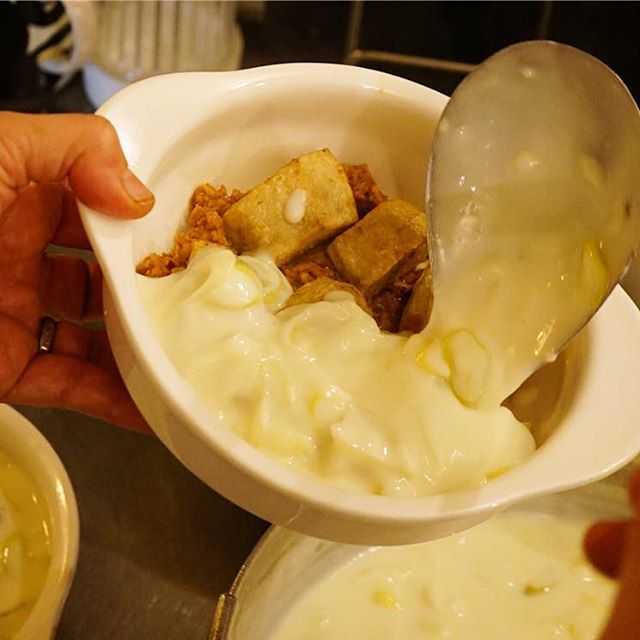 とろ〜りとホワイトソースに里芋とミートソースでダブルのソース!今夜も人気は「里芋と長ねぎのミートソースグラタン」!あつあつだよー!(お)