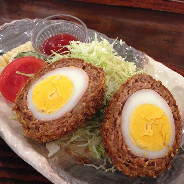 今日のまかないは「スコッチエッグ定食」です。前回食べた時、実家に電話して作ってくれなかったよねと話したらうずらの卵で作ったことはあると強く言われました。全然覚えてないなぁ(い)