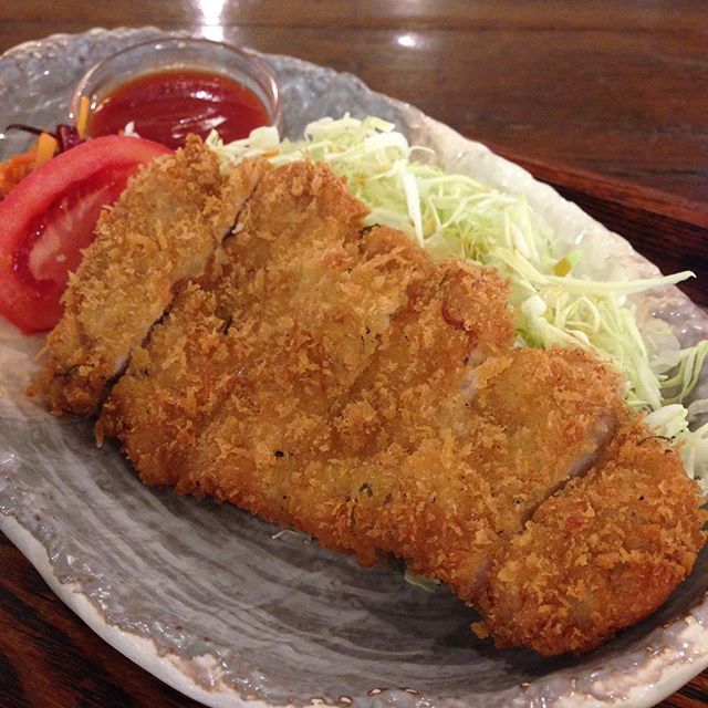 今日のまかないは「しそちりめんとんかつ定食」です。久しぶりのしそちりとんかつ。見てわかるように大きかったです。お腹いっぱい。ごちそうさまでした。(い)
