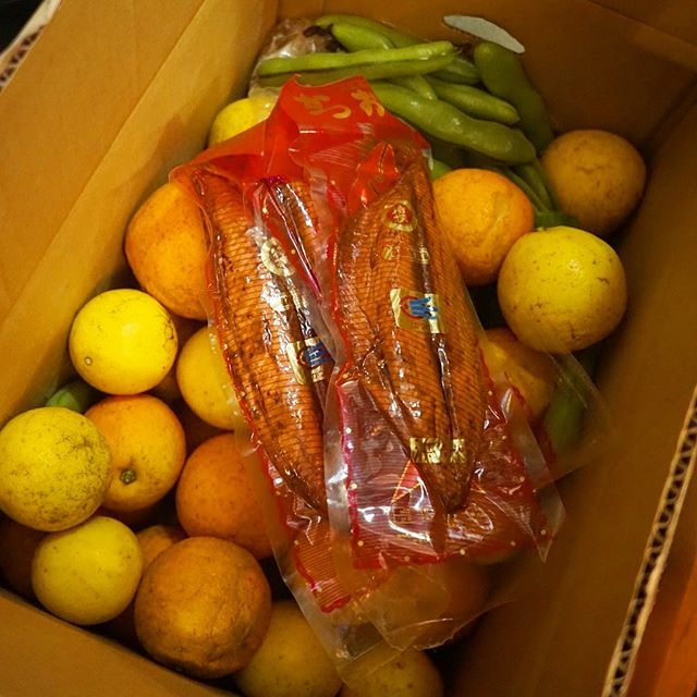 さてと午後は高知からの仕入れ?の荷物が届いたよ!とお邪魔した森田農園さんの柑橘にそら豆などなど、JA直販は「とさのさと」で仕入れた鰹の生節や柚子果汁などなど、キッチンチームは仕込みがんばって!(笑)(お)