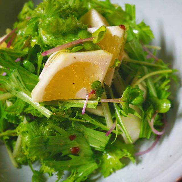 森田農園さんで収穫させていただいた小夏!ほんの短い旬の期間にたまたまお伺いしたのがラッキー!爽やかな酸味と程よい甘みと苦味が、ほろ苦野菜と良く合います。にんにくレモンドレッシングで和えただけで、小夏の美味しさが生きてきます。あるだけ売り切れ御免!ぜひぜひ!(麻)