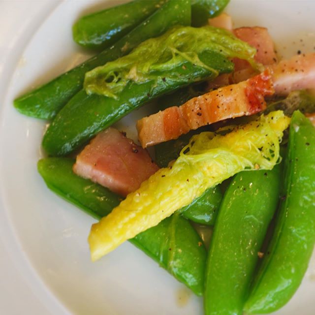 あるだけ売り切れごめんだよ!森田農園さんのヤングコーンはそのまま食べても美味しいくらいだけど、ここはスナップえんどうと合わせてゴルゴンゾーラ蒸しに!スナップえんどう、ミヤザキ史上一番甘くて美味しいと保証します。(麻)