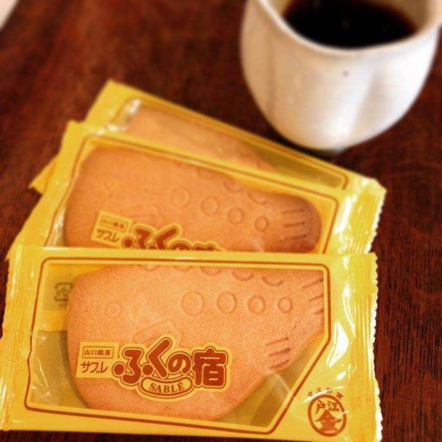 故郷が山口のおなじみのお客様からいただきました。ふくのお宿?ふく?となりますが山口ではフグのことを「フク」と言うそうです。おぉ〜、お菓子から豆知識教えてもらいました。ありがとうございます!ごちそうさまでした。(うめ)