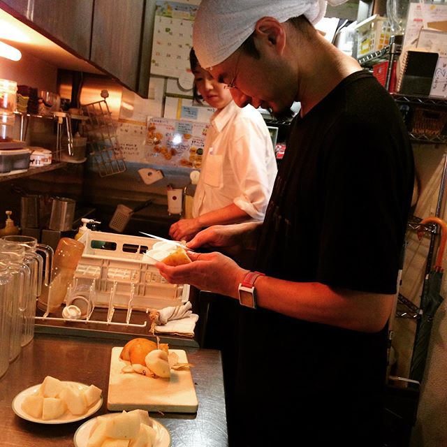 暑いね〜、と言いながら、okayanが梨を剥いてくれました。ランチ準備万端です。皆さん、ご来店お待ちしてます!(うめ)