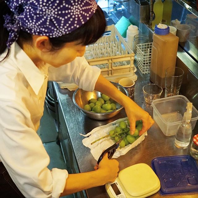 そして今週末でおしまいですよ!は季節のフレッシュカクテル!「シャインマスカットのワインカクテル」!ブドウをひと粒ずつに切り分けてくれてる南ちゃんです!お見逃しなく!(お)