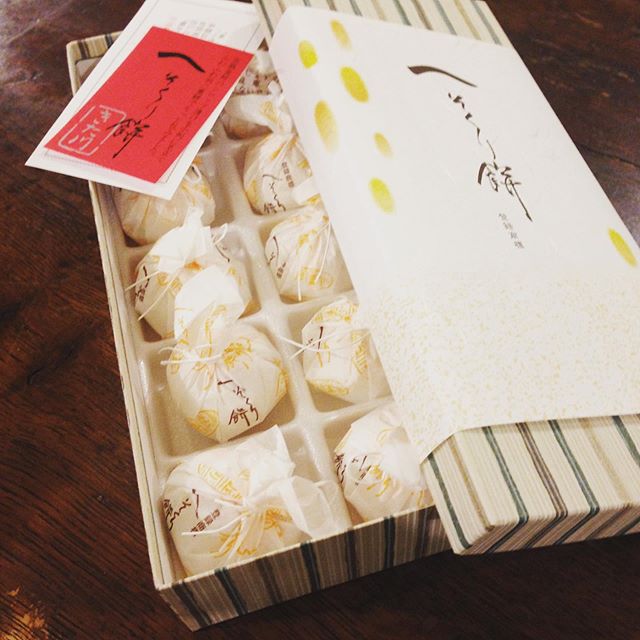 ナベさんから差し入れをいただきました。その名もへそくり餅。きんかんのシロップ煮を羽二重餅で包んだ和菓子だそうです。こっそりと?いただきまーす!(に)