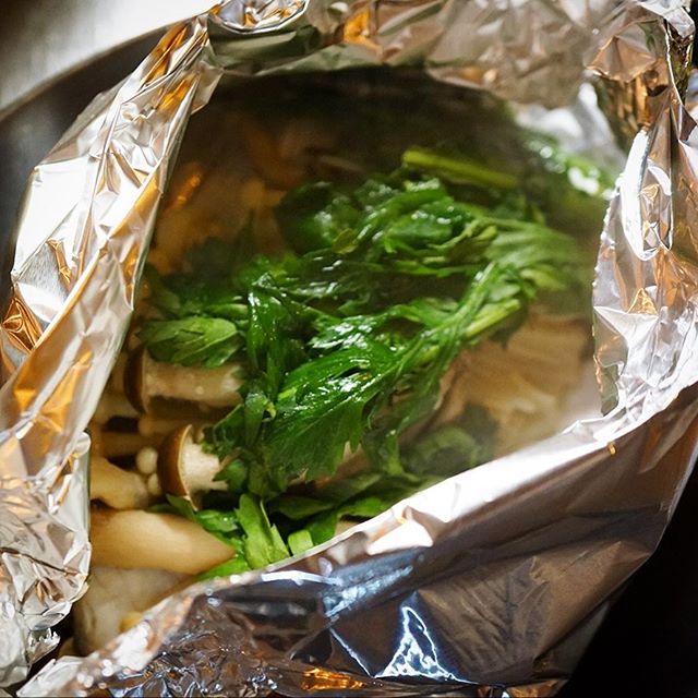 さてと今日のランチでも人気でしたが、夜もメニューインは「たらと春菊、きのこのホイル焼き」!といや、ホイル焼きってただ「ホイルに入ってる」だけでおいしそうよねとこのチラリズム!(苦笑)もちろんあつあつをぽん酢醤油でどうぞ!(お)