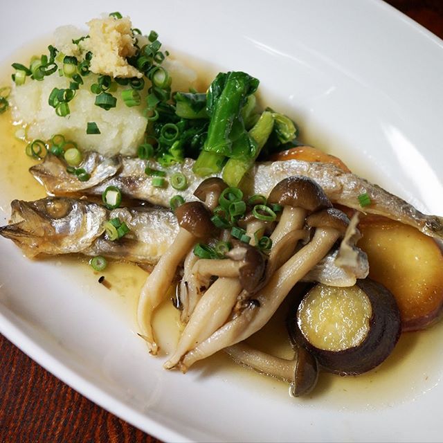 さてと明日のランチ日替わり魚メニューは「ししゃもとさつまいも、きのこの揚げびたし定食」!と、さっくり揚げて旨味を閉じ込めたししゃもにしめじにさつまいも!やさしいお味の出汁にさっくり漬けて揚げびたし!お魚好きはぜひ〜!(お)