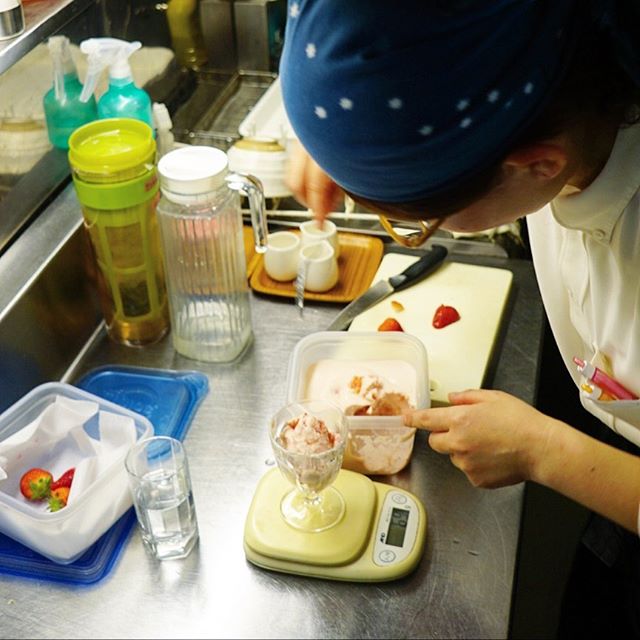 さてと今週から春の必殺デザートも登場!ともちろんおなじみ「つぶつぶいちごのババロア」!すでに連日じゃんじゃんご注文いただいておりますよ、えぇ、ウメさんがせっせと盛り付けしてくれてます!呉々も売切御注意!(お)