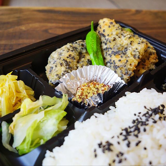 さてと今日のお持ち帰り日替わり弁当は「鶏のごま衣揚げ」!当店「ごま衣揚げ」というとウインナー!ですけど、いやいや鶏肉でいっちゃうよ!ともちろん粒マスタードでどうぞっ!GWはのんびり昼ビールにもうってつけ!(笑)(お)