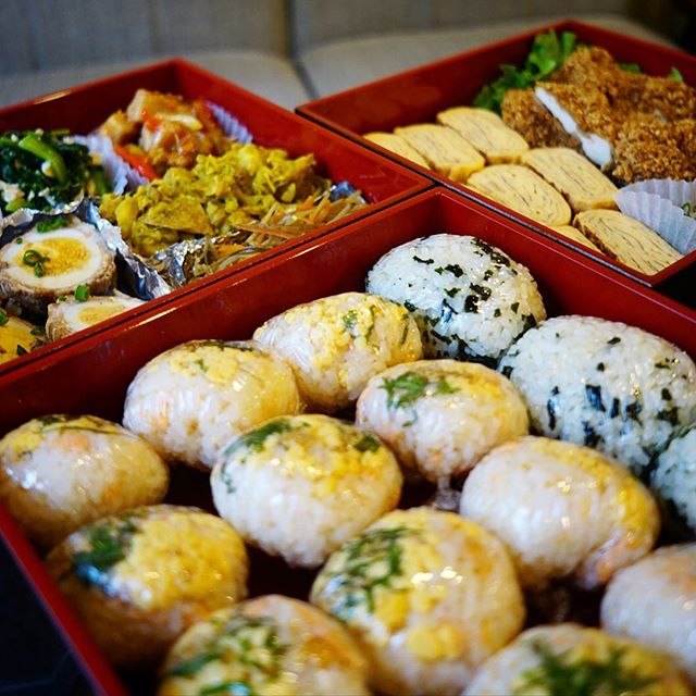 さてと本日ご用命の三段お重はわいわい元気なお子さまといらっしゃるお家族!ということで、店長ミヤザキここは鮭の手まり寿司にわかめごはんのおにぎり、もちろん玉子焼きにクリスピーチキン!と…あぁ、ワタクシがこどもだったらオオヨロコビ間違いなし!…って、いや大人だってビールもつまみにもバッチリだよね!そうだよねっ!(笑)