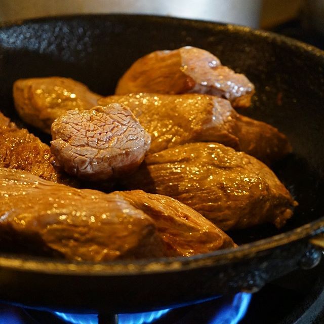 当店的には周年記念ウィークではありますが、みなさん今月はぼちぼち以前の生活のリズムも戻りつつもあってか、今までのようなご利用はないんですが(つまりちょっとヒマ…苦笑)、それでも今週の冷前菜とっておきは「和風ローストビーフ」!…自ら捌いた牛肉を焼く店長ミヤザキであります!(お)