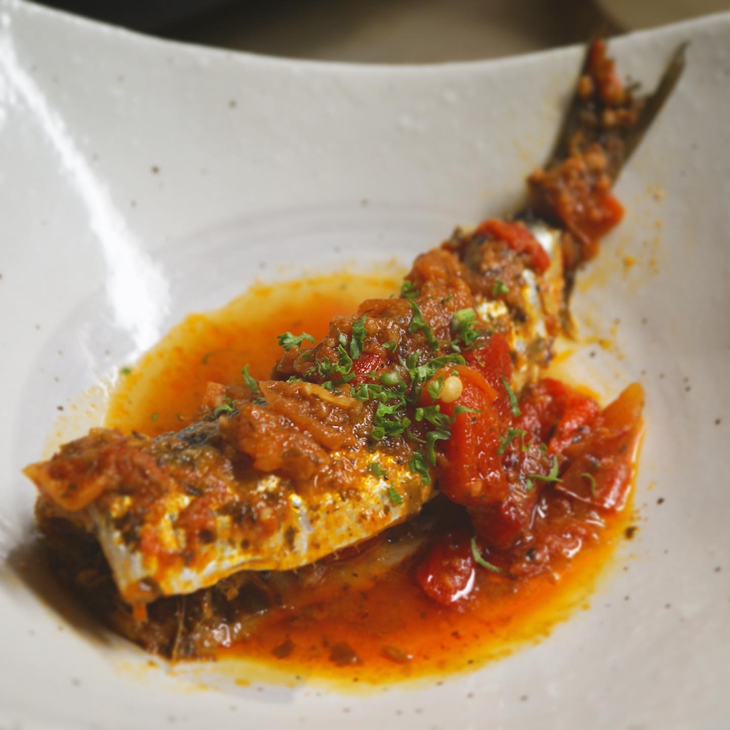 ほんのりスパイシーに、トマトとパプリカ…このへんがモロッコ風のポイントかと思います、イワシのタジン風。イワシってどこの国でも美味しく食べてもらえる良い魚ですね。ワインにビールに、日本酒だっていけちゃいそうなサラッとスパイス風味のイワシ、ぜひ食べていただきたい!(麻)
