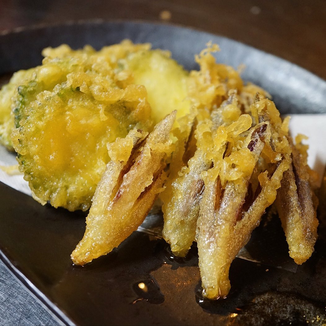 さてと激しく短い?夏もそろそろ落ち着いて来る頃ですが、逆にここで元気にまいりましょうね!と「輪切りゴーヤと茗荷の天ぷら」!いや、ワタも種も一緒が旨い!のゴーヤのお供はさわやかな夏の薬味は茗荷!あつあつをカレー塩でどうぞ!(お)