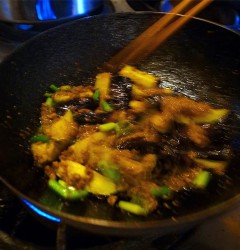 と、店長ミヤザキ今夜の新メニューは「麻婆茄子」!ごりごりすった花山椒に唐辛子と豆板醤!牛ひき肉の旨味とさっくり素揚げにした茄子を合わせたら、じゃじゃっととろみの麻婆茄子!とにかく旨い!ぜひ!(お)