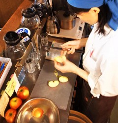 昨夜完売御礼は夏のアイス「パイナップルのフローズンヨーグルト」に代わって、秋のシャーベット「りんごとヤクルトのシャーベット」…沼田さんが仕込み中。来週からお出ししますからねー!(お)