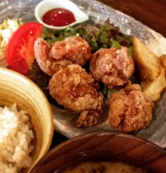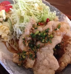 今日のまかないは「豚のから揚げ中華香味だれ」です。最近、朝ごはんを減らしたので開店前からお腹がすいて…いっぱい働いた後のご飯は美味しかった!また、火曜日から頑張ります!(い)