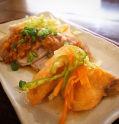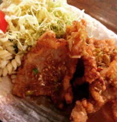 あぁ大忙しの土曜日のランチ…日替わりランチも売り切れで、賄いはゆで豚か南蛮漬けか…どっちも捨てがたい!と、盟友ナベさんとシェアして半分ずつでいただきました!サンクス!(笑)(お)
