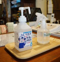 さてと今週から昼の部はほんのりランチ営業も再開の当店ですが(お席6組のみ)、入り口入ったところにわかりやすく消毒液もご用意しましたのでぜひビオレママご活用を!(笑)(お)