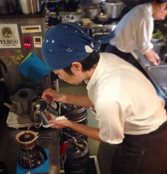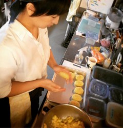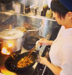 さてと昨夜揚げものひとり勝ちは「きんぴらごぼうのさくさくフライ」!店長ミヤザキ、そのほどよくたべごろサイズのきんぴらをじゃじゃっと下ごしらえ中です!火だって出ちゃうぞ!(笑)(お)