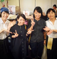 はいはい「元スタッフがひょっこり遊びに来てくれました」シリーズ!?今夜はおすぎ!双子のお姉ちゃんと美人姉妹といっしょにパチリ!店長ミヤザキの誕生日プレゼントもありがとね!(お)