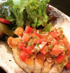 今夜のおススメはやっぱり揚げもの!ビールのとも!(笑)ランチでも人気でしたよと「茄子とズッキーニのはさみ揚げ」!夏のふたつのはさみ揚げ、あつあつをカレー塩でどうぞ!(お)
