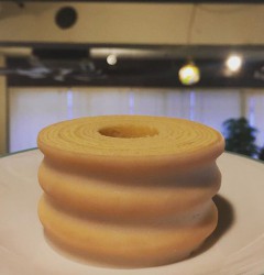 ほぼ毎年恒例で友達ヤナちゃんから届くバウムクーヘン。ユーハイムのバウムクーヘンは王道の美味しさ。ありがとう、いただきます! 思わず空中に浮かせて写真を撮ったら、UFOみたいですね。(麻)