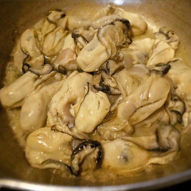 さてとまだまだ今週も牡蠣がイイネ!と魚屋さんが配達してくれたぷりぷり牡蠣はそのままさっくりバターでフランベして旨味を閉じ込めたら、旬の寒じめほうれんそうと合わせてあつあつグラタンでいこう!(お)
