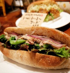 そしてもうひとつはリトスタ定番の人気メニュー!トリカラ・タルタルサンド!(笑)いや、説明は要らないてすよね!と、キャベツがまたベストマッチ!…鶏のから揚げは小さく単品でもご注文いただけますよ!(お)