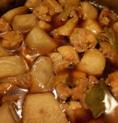 店長ミヤザキ、昨夜遅くにTwitterで予告しておりましたが、えぇ、その秋の煮物は「栗と里芋、鶏肉の炒め煮」…大鍋ですでにしんみり待機中!(笑)こっくり秋の旨味を今夜ぜひ!(お)