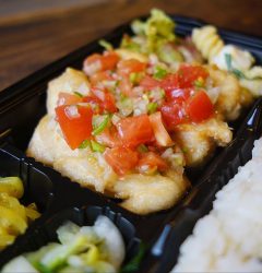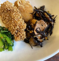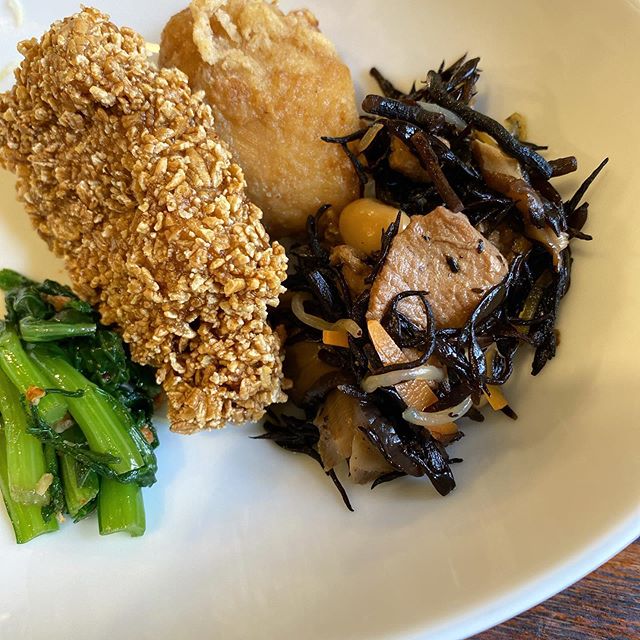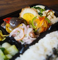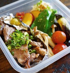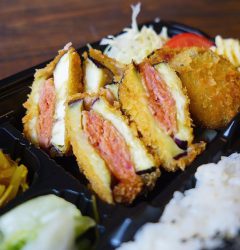 さてっ!今日の日替わりお弁当はランチ時代も人気でしたね!「茄子の挽き肉サンドフライ」!なんたってあつあつジューシー!肉汁を茄子がしっかり受け止めて旨味が満点ですよー!たべたーい!(笑)(お)