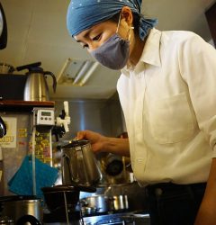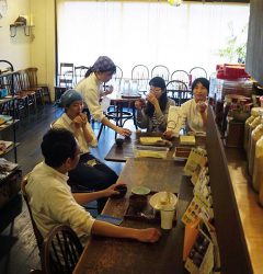 と、コーヒーも入ったところでホールスタッフ南ちゃんが差し入れてくれた日本三大饅頭は「柏谷薄皮饅頭」をみんなでいただいております!いや、5月のすてきな昼下がりであります、ハイ(笑)(お)