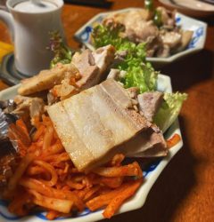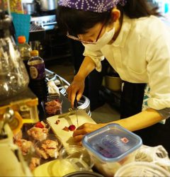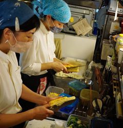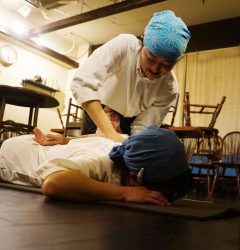 閉店後は店長ミヤザキ、ややギックリ背中ということでキッチンスタッフぐらによります施術は題して「肩甲骨剥がし」!ってなんだかすごそうな技みたいよ!(笑)これぞ師弟愛!?がんばって!(お)