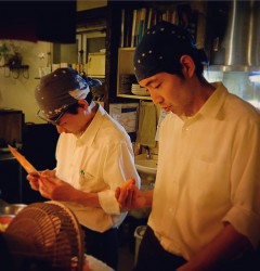 今晩の一時貸切ディナーに備え、スタッフまかない中です!テーブルの関係でなかなかシュールな配置でごはんをみんな食べてるの図。22時からは通常営業しますので、よろしくお願いします︎(さ)