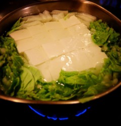 で、ま、これがシンプルな湯豆腐(笑)…昆布のだしと、白菜、ぽん酢に大根おろし、しょうが、柚子胡椒、豆板醤に万能ねぎをあわせていただきました!あー、冬の季節は湯豆腐がいいな(笑)。(お)