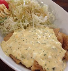 今日のまかないは「甘酢チキン タルタルソース定食」です。昨日、6月に作った梅ジュースを飲みました。今年も美味しくできました。梅と氷砂糖入れるだけなんですけどね。(い)