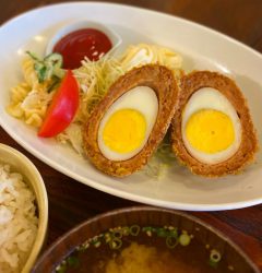 さて、暇でしたよ、ランチ! 自粛ムードかも知れません。でも、お弁当できますよ!スコッチエッグ弁当は冷めても美味しいと思います。もちろん今夜のボジョレ・ヌーボーに合わせてもよろしいかと!(麻)