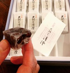 おなじみのお客様からいただきました。やわらか〜く煮た小豆を寒天で固めた涼しげな和菓子。大人だ、大人のお菓子だ!愛でながらいただきました。ありがとうございます。(うめ)