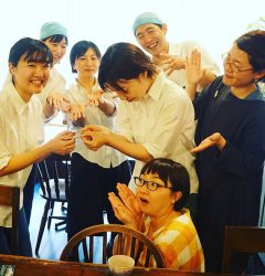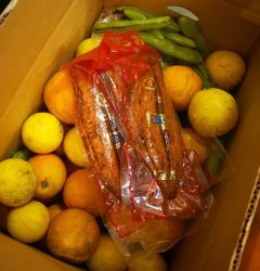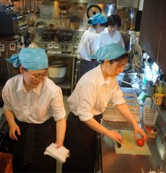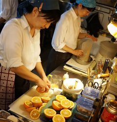 あー、お昼時とぼちぼちスタートでいやまだまだ全然オッケーよ!と(笑)小さい時間で森田農園さんにいただいただいだいを搾る店長ミヤザキ…今夜の「かつおの土佐造り風」のぽん酢ようですな!(お)