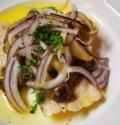 さらにもう一品新メニューは「ブリときのこのコンフィ」!しっかり旨味のブリにぷりぷりきのこ!ハーブやにんにく、黒胡椒を加えたオリーブオイルは低温でじっくり煮込んでコンフィがイイネ!(お)