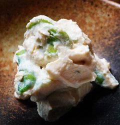 さてと静かそうです金曜の夜!(苦笑)こんな日には派手目のメニューをと思いきや、実に地味な白あえは「ふきとこんにゃくの白あえ」!と(笑)、いやいやどうして2006年以来の登場ですよ!ぜひ!(お)