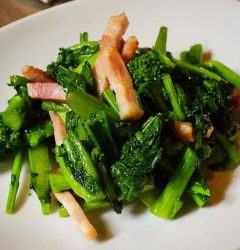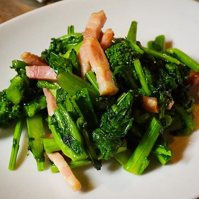 さてと日曜日の夜〜!春のほろ苦菜の花が主役!は「菜の花とベーコンの塩炒め」!シンプルに菜の花のおいしさを味わう一品です!さてと今夜はお席も空いてますよ!チャンスだよ!(笑)(お)