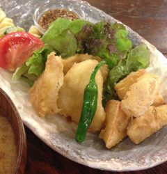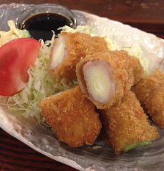 今日のまかないは「長ねぎの豚肉巻きフライ定食」です。ねぎを使った料理…鍋やみそ汁の具などしか思いつきませんでした。食べたらねぎがとっても甘くて美味しい。いつもと違う食べ方が新鮮でした。(い)